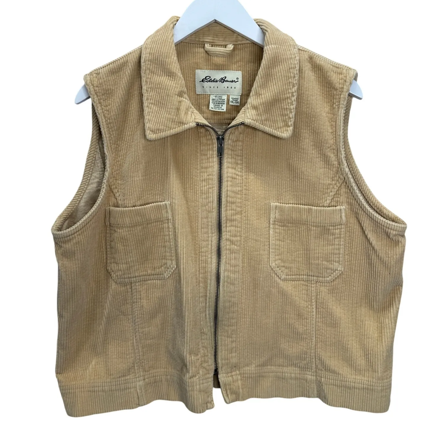 Eddie Bauer Women's Zip Corduroy Vest Size XXL Beige Pockets Vintage western style 24" underarm... Show more