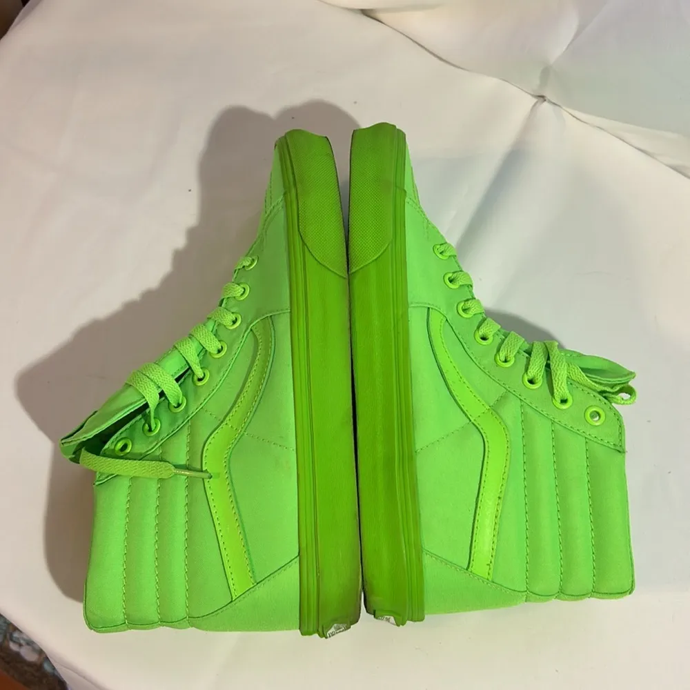 Vans UNSEX High Top Classic Triple Neon Green Skate Shoe Men’s 8 Women’s 10 -VGUC B