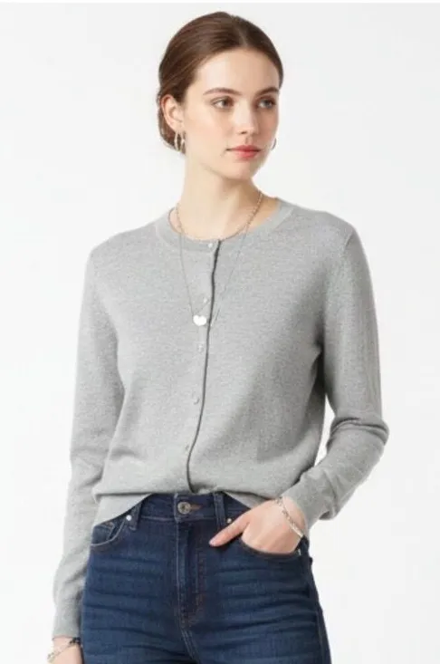 J Crew 100% Cotton Gray Caryn Button Front Long Sleeve Cardigan Sweater Very good pre owned No fla... Show more