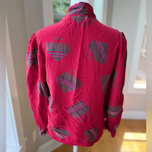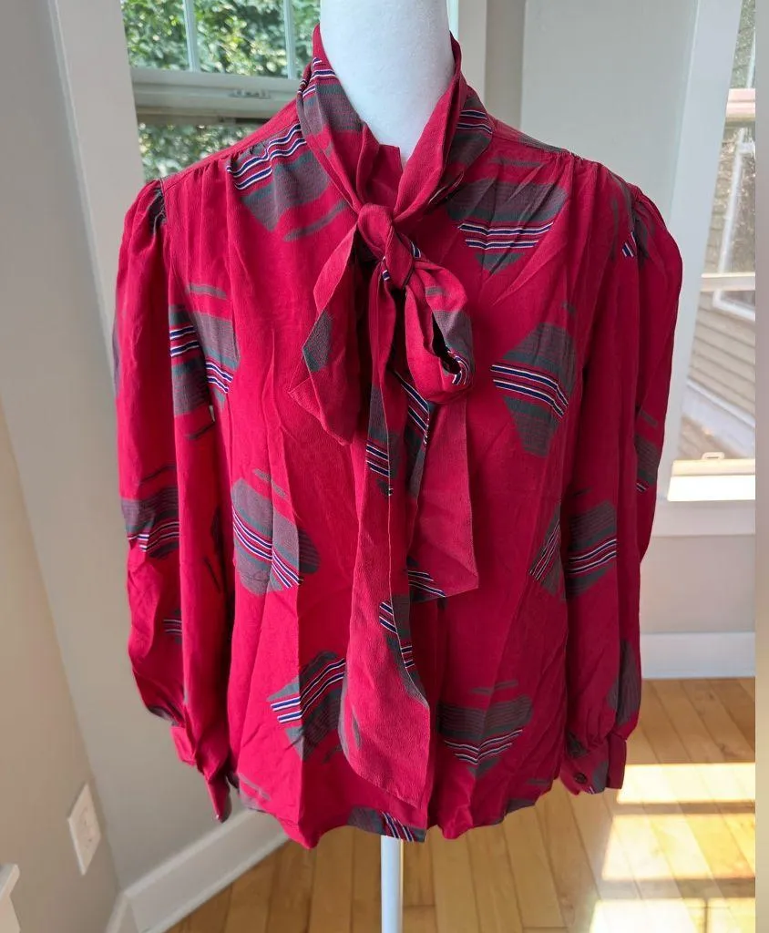 Vintage Ernst Strauss Red Silk Graphic Printed Tie Neck Puff Sleeve Blouse Sz 8 - $50 - From Katie
