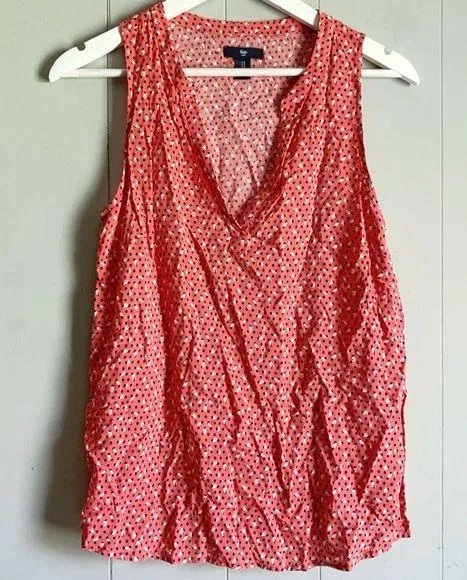 GAP Semi Sheer Red Floral Sleeveless Vneck Tunic Top S Size small All over polka dot leaf print Mand... Show more