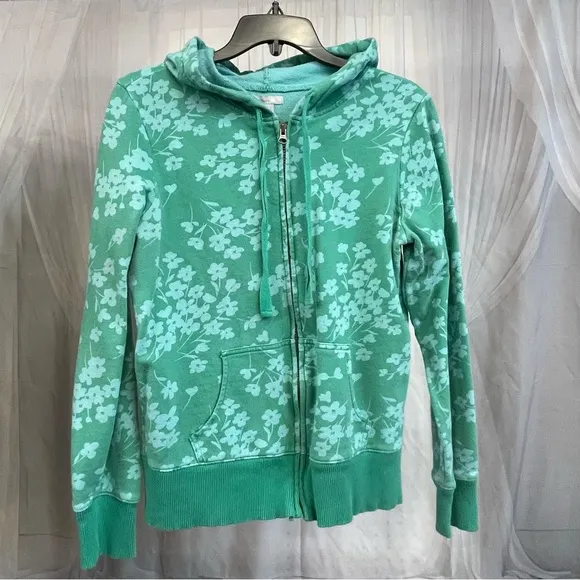 Old Navy zip up hoodie in a dreamy mint green with white floral allover print. True Y2K vibes with f... Show more