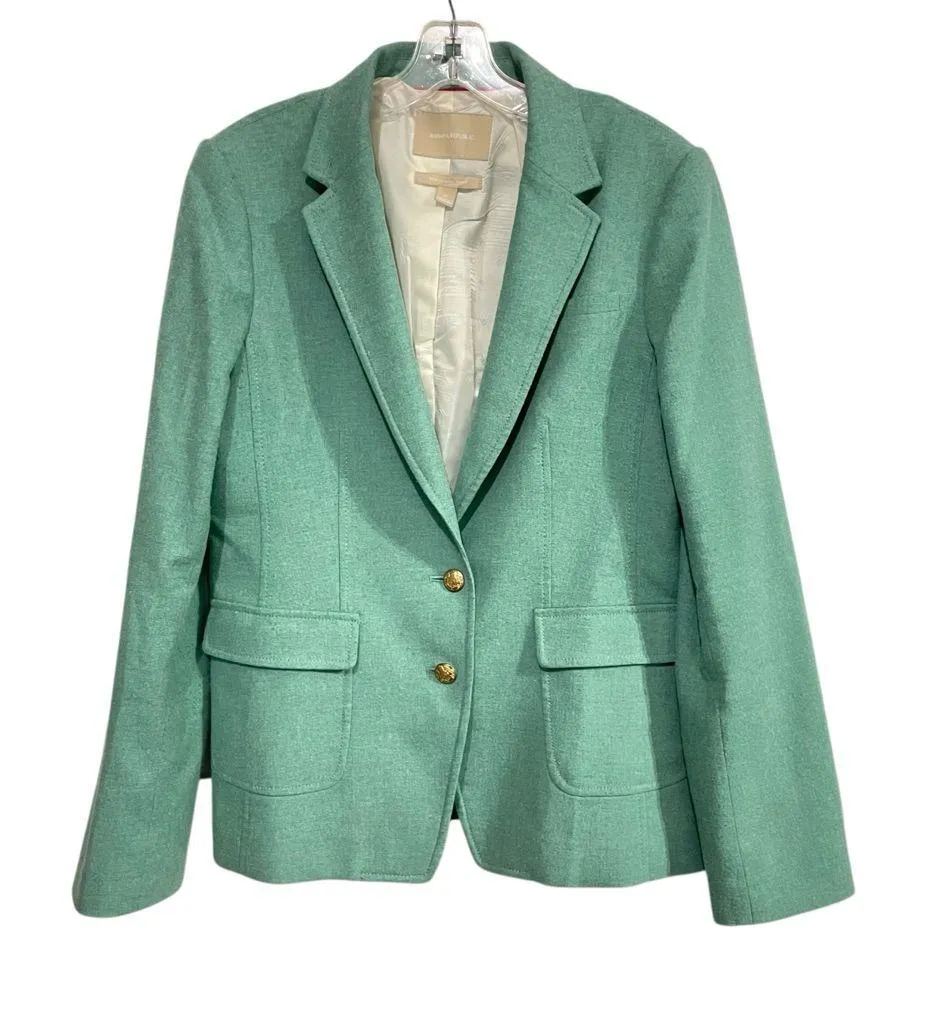 Banana Republic Mint Green Wool Blend Blazer Jacket Size 12 Gold Buttons Elbow Patches Description... Show more
