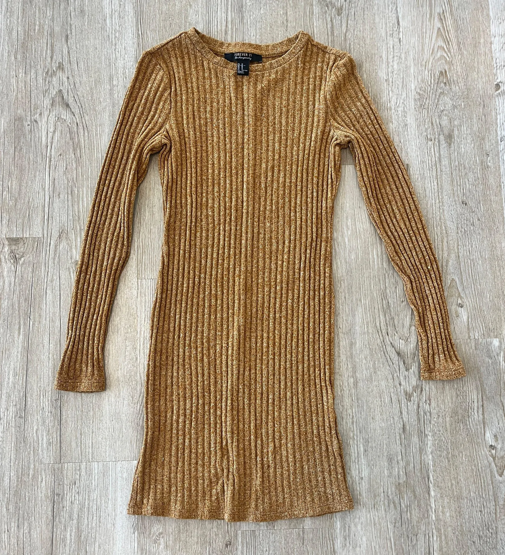 Womens size medium Forever 21 Contemporary Brown long sleeve mini sweater dress Small snags on slee... Show more