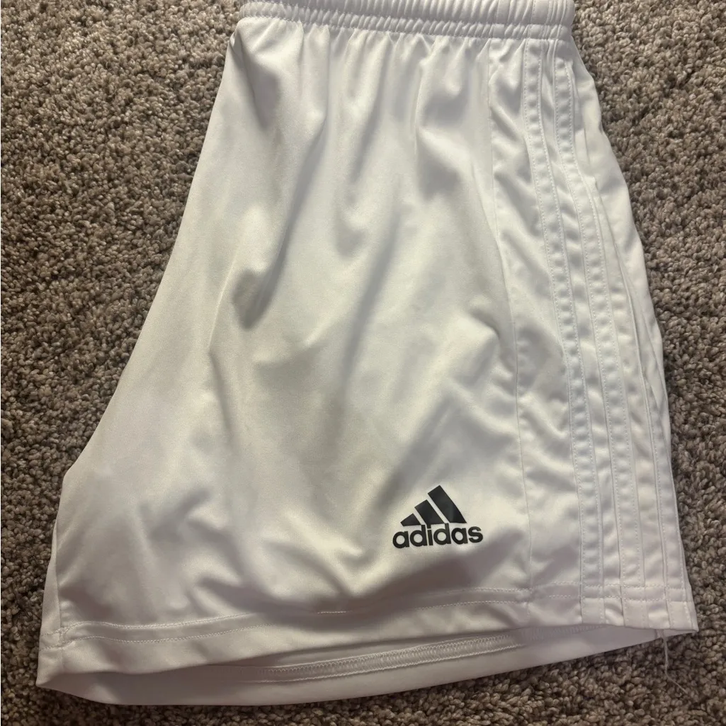 Sleek white shorts with Adidas logo. Comfortable and stylish.