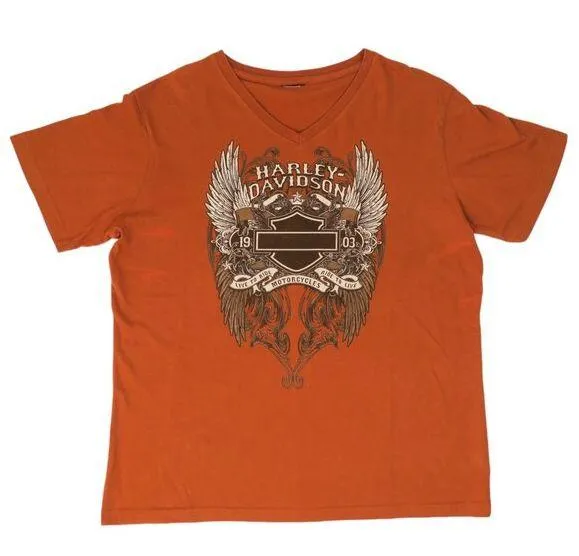 Double sided graphic women’s t-shirt. Front reads “Harley Davidson 1903 Live To Ride Ride to Live Mo... Show more