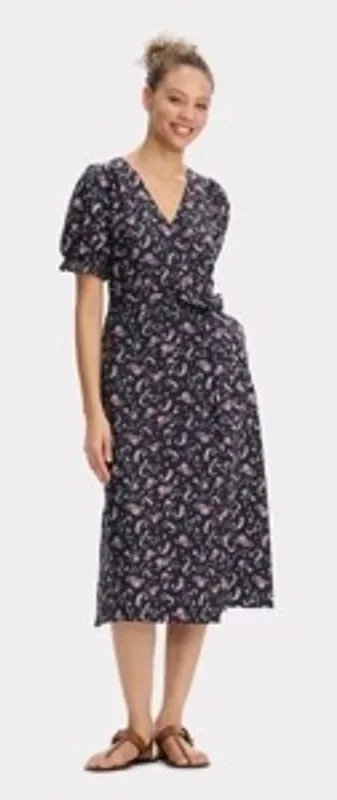 Universal Thread NWT Women's Puff Short Sleeve Midi Wrap Dress Black Paisley L Size L - $40 New With Tags - From Amy
