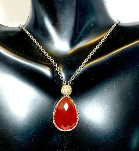 This listing is for the pendant and necklace pictured. JOSEPH ESPOSITO Genuine fine quality, sterling silver 925 mounting with a cable style sterling silver chain with a lobster claw clasp. Pendant is set with a checkerboard cut, pear shaped red carnelian stone. High quality cubic zirconia stones accent the carnelian and are set in a yellow gold tone bezel. The total weight of the pendant and necklace is 12.70 grams Stamped "925" "ESPO" "CZ" The chain is adjustable 15.75 inches to 17.75 inches Please refer to photos with the ruler for a general idea on the size of the piece. Some pictures are enhanced to show detail. *Please note that color calibration varies from computer to computer and device to device; what may look one color on our screen, can differ from your screen. While we do the best we can to display the true hues of our pieces, sometimes the exact color cannot be captured. *pre-owned jewelry may contain minor marks and/or imperfections.