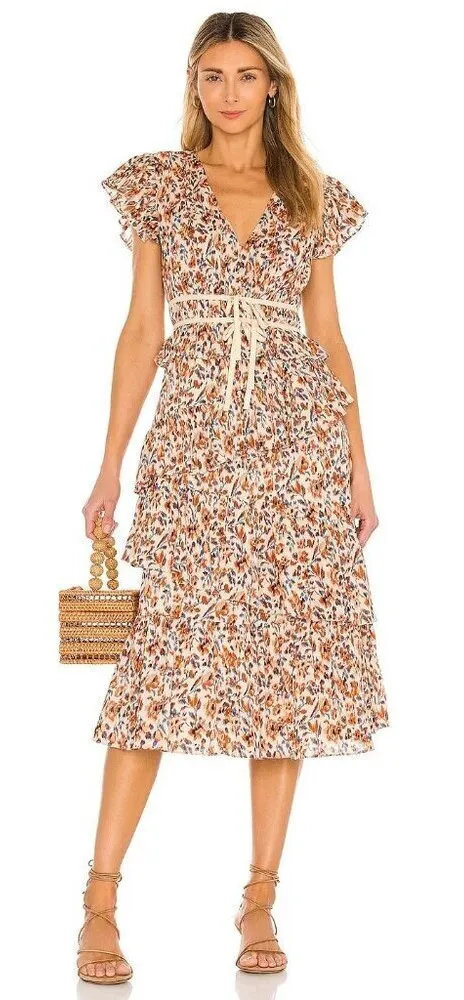 ULLA JOHNSON Madeline Ikat Poplin Midi Dress Delicately tied along a plunging neckline, Ulla Johnson asymmetrically ruffles their Madeline midi dress in their Ikat Garden cotton poplin for a feminine finsih. Side zip closure. 100% cotton. Partially lined. Hidden side zipper closure. Front tie accents. Tiered ruffle detail. Imported. Revolve Style No. ULLA-WD258. Manufacturer Style No. SP210134. Color: Cream MSRP: $425.00 Size: Womens 4 Measurements taken flat across, Bust 18 in / 46 cm Hips 20 in / 51 cm Length 47 in / 119 cm Waist 12.5 in / 32 cm Condition: Pre-Owned Good Tags: midi, party, event, fashion, night out, clubbing, sexy, club, clubwear, celebrity, bondage, pleather, faux leather, vegan leather, met gala, runway, pleather, sickening, dominatrix, fall, autumn, thanksgiving, winter, holiday