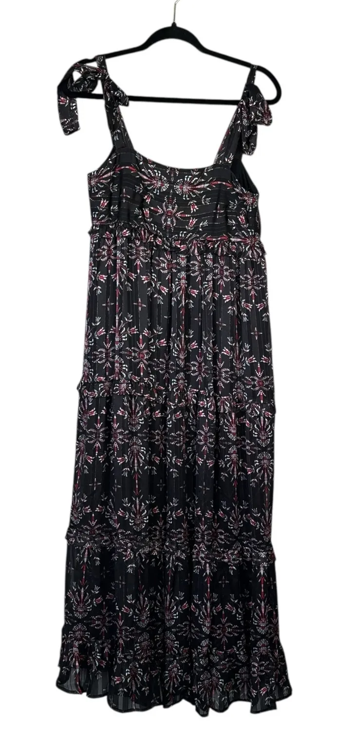 Tiered Tie sleeves Lace up back Stock photo is the same dress in a different print Polyester Hand wash Originally $385 Size Small Measurements~~ 16" Pit to pit 54" Length Excellent condition, no flaws