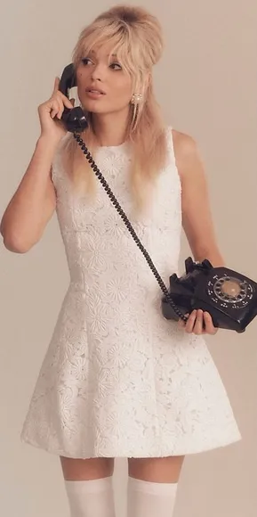 Size 8 No flaws In great condition! Details Crafted of floral lace, Sachin & Babi's Mon Coeur minidress is designed with a flared silhouette. This sleeveless style features a heart cut out trimmed with beads at the back. Round neck Sleeveless Back heart cut out Back hook-and-bar closure 100% polyester Dry clean Imported SIZE & FIT About 34" from shoulder to hem Model measurements: 5'10" tall Model is wearing a US size 4