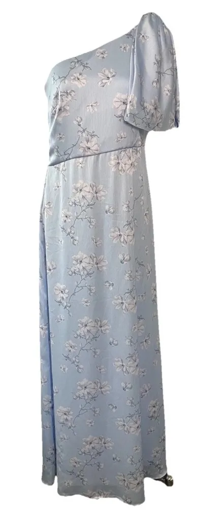 Elegant and romantic, this Sachin & Babi maxi dress is perfect for weddings, spring soirées, and formal events. The light blue base with delicate white floral print brings a fresh, feminine feel, while the one-shoulder neckline and puff sleeve add a modern, runway-inspired twist. Details: • Brand: Sachin & Babi • Size: US 10 • Color/Pattern: Light blue with soft white floral print • Material: 100% polyester shell & lining • Style: One-shoulder maxi dress with puff sleeve • Occasion: Wedding guest, garden party, summer formal, spring event • Condition: New without tags (never worn) Measurements (approximate, laying flat): • Bust: 18” • Waist: 16.5” • Length: 58” This piece embodies the romantic floral trend with an ethereal silhouette and statement sleeve. Pair with strappy heels and pearl or gold jewelry for an unforgettable look. Sachin & Babi dress, floral maxi gown, one-shoulder puff sleeve dress, spring wedding guest dress, blue floral formal dress, romantic evening gown