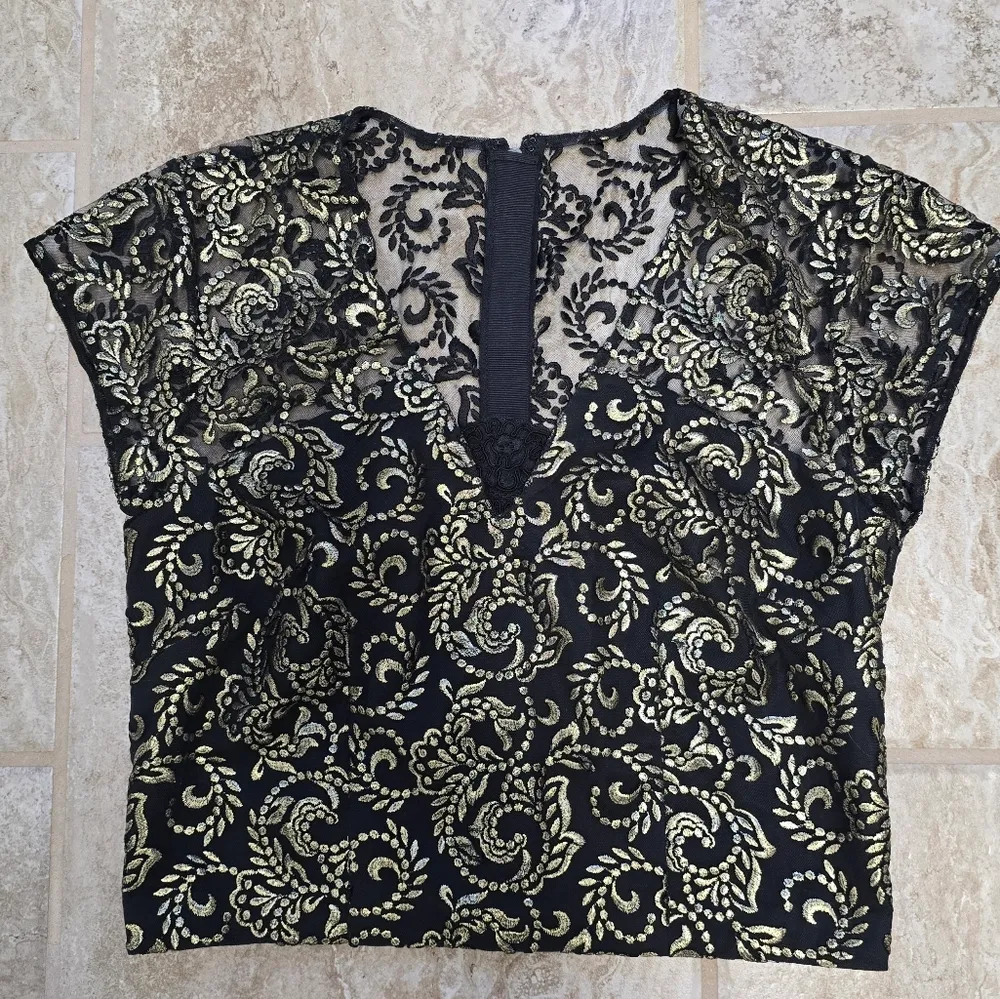 Sachin & Babi Noir Womens Black Gold Lace Crop Top Sheer Embroidered Size Medium - $75 - From Carla