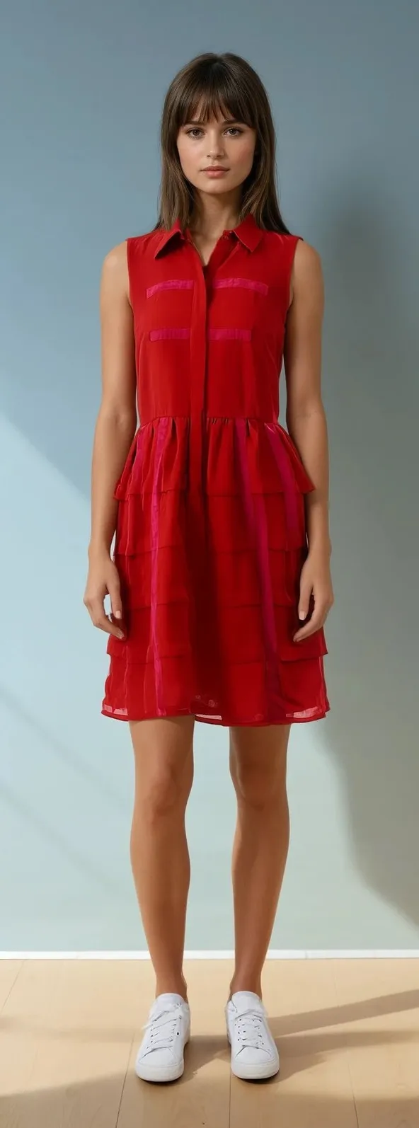 Radiant charm unfolds in this Sachin & Babi dress, a vibrant statement piece perfect for adding a pop of color to your wardrobe. The dress features a classic collared neckline and a sleeveless design, offering a blend of sophistication and comfort. Its tiered skirt adds playful movement, while the rich red hue ensures you'll stand out in any crowd. The subtle ribbon detailing on the bodice adds a touch of elegance, making it a versatile choice for both daytime events and evening gatherings. Imagine yourself wearing this dress to a summer garden party, a casual brunch with friends, or even a romantic dinner date. Style: Shirt Dress, Fit & Flare Dress Length: Short Color: Red Department: Women Sleeve Length: Sleeveless Pattern: Solid Occasion: Casual, Party/Cocktail Material: Polyester Neckline: Collared Fabric Type: Woven Character: Chic, Retro, Elegant, Party Girl, Summer Girl Season: Summer, Spring Sleeve Type: Strapless Keywords: Sachin & Babi, red dress, sleeveless dress, tiered dress, casual dress, party dress, collared dress, size 2, women's dress, polyester dress, summer dress, day dress, cocktail dress, little red dress