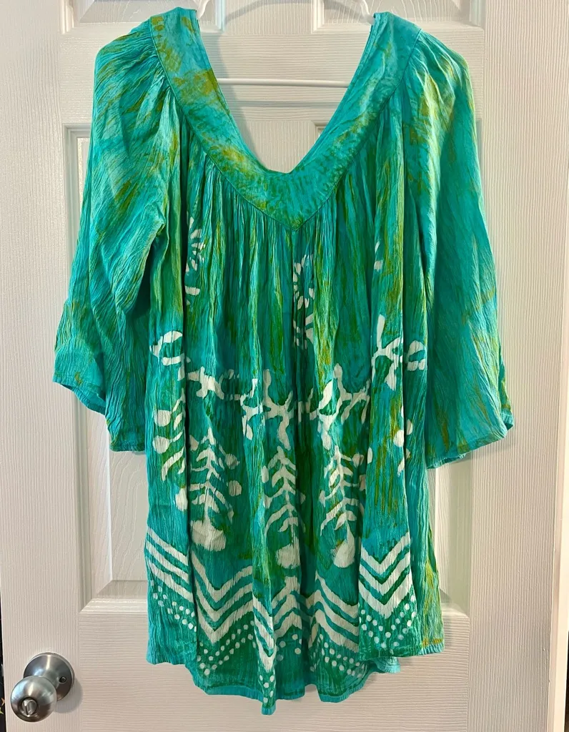 Sacred Threads Green Gold Crinkle Rayon Top OS Size undefined - $19 - From Kimberly