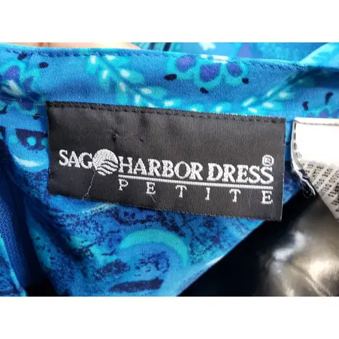Sag Harbor Petite dress in size 10P. Featuring a bold multicolor blue print, short sleeves, and an e... Show more