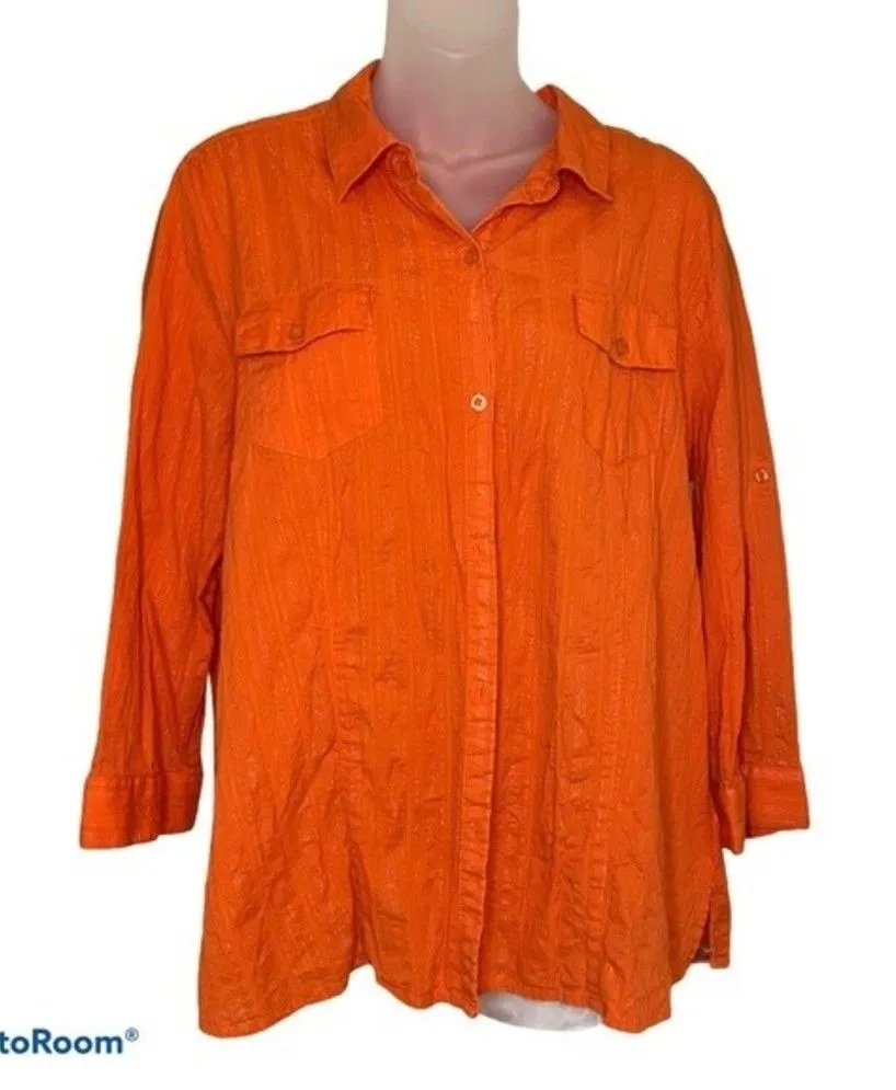 Sag Harbor Orange Button Down Collared Top Size XL - $15 - From Heather