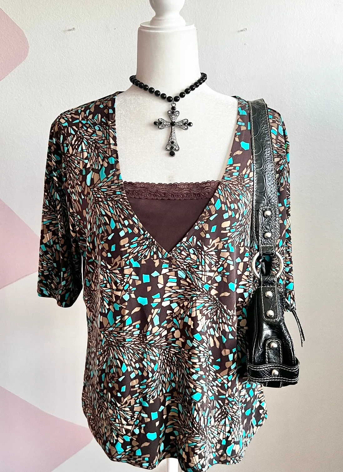 Vintage Wrap Layered Top Y2K Boho Indie Retro Minimalist‎ Festival 2000s Large Brown - $17 - From Kenia