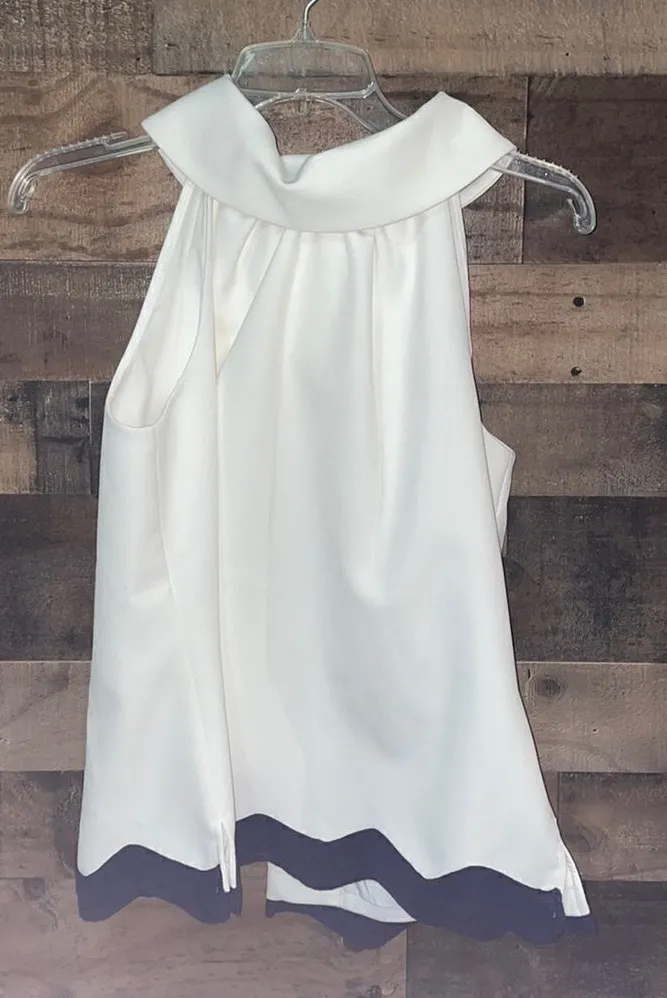 Sail to Sable Cream Cowl Neck Top with Back Buttons and Navy Rick Rack Trim, size small. Excellent u... Show more