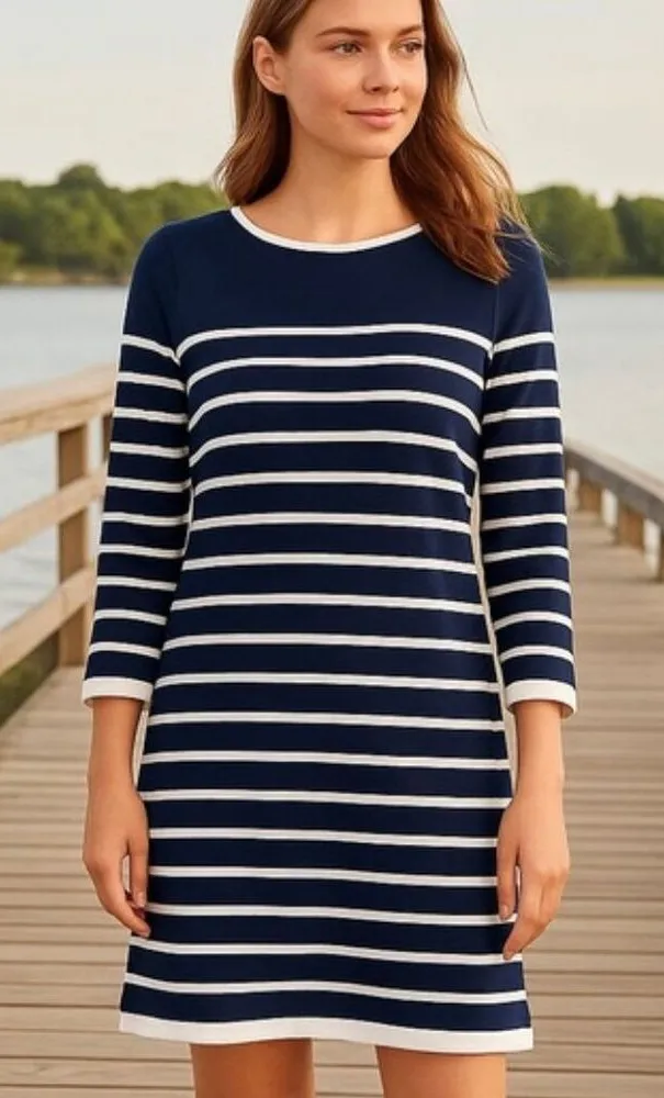 Brand: Sail to Sable Description: preppy cotton blend striped crewneck 3/4 sleeve dress Size: xs Color: navy and white Condition: Gently Worn Very Good 👍🏻 Measurements: Pit to pit: 15” Length: 33” **Bundle and Save!!** all measurements are approximate and taken laying down 10/10 A8