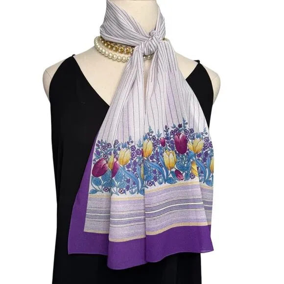 So sweet Saint Michael vintage Italian chiffon tulip stripe long scarf! Looks fab on your handbag •Size: 11x54" •Condition: Excellent vintage – like new •Color: purple white yellow blue black gray magenta pink Bundle for combined shipping! Pictures are part of the description. Color may vary by screen. Sizes vary between designers. ALL preowned items can be expected to show normal signs of wear. Smoke free, DOG FRIENDLY home. 10% of net sales go directly to charity at my local food bank. tags: spring summer fall vintage preppy tennis prep country club garden party polo coquette elegant timeless chic sophisticated classic classy church brunch interview office business work meeting boss secretary corporate cottage style