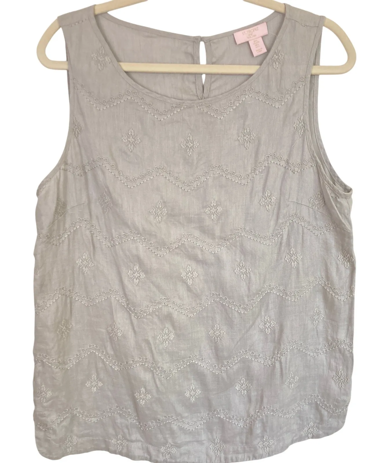 Excellent gently used condition, with no visible flaws (see pics for additional details). Style tags: vacation, resortwear, minimalist, relaxed, comfort, summer, lagom Size L Please check measurements against an item you currently own! Flat measurements (approximate) Length: 26" Pit-to-pit: 20" Smoke-free, pet-friendly home. Items are steamed before storage.
