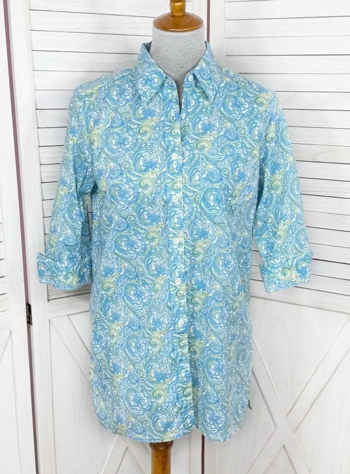Real Clothes Saks Fifth Avenue Paisley Button Up Shirt Green Blue Size 4 Sky blue & lime green p... Show more