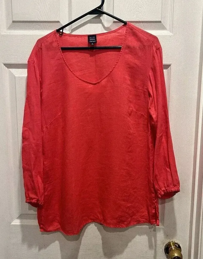 Saks Fifth Avenue 100% Linen Top Tunic Pink V-Neck Coastal Beach Medium Great pre owned condition. O... Show more