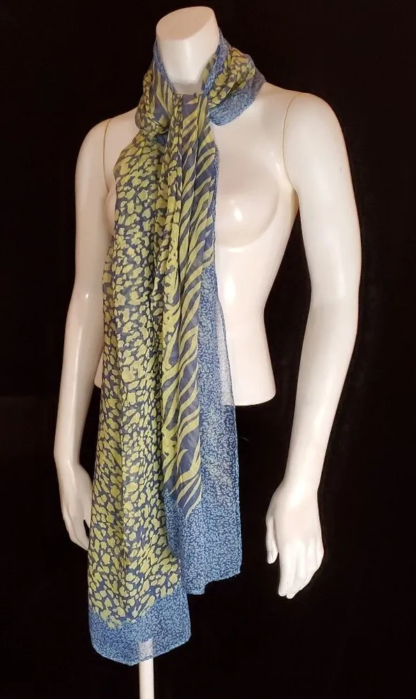 Blue and green animal print lightweight scarf from Saks Fifth Avenue. Polyester