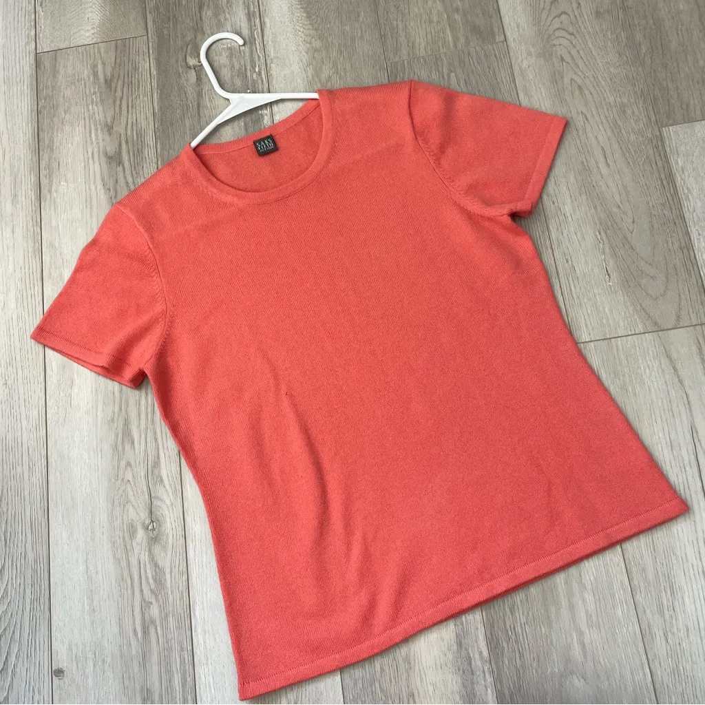 Saks Fifth Avenue Cashmere Tshirt in the color Coral. Crew neckline, short cap sleeves, regular leng... Show more