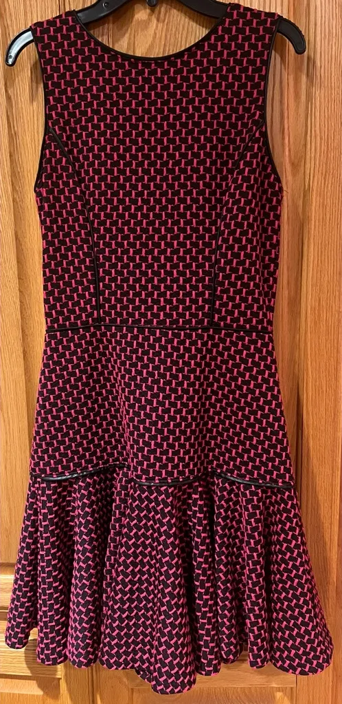 I’m selling a Vintage Saks Fifth Avenue RED LABEL Pink & Black Geo Print Sleeveless Drop Waist Dress... Show more