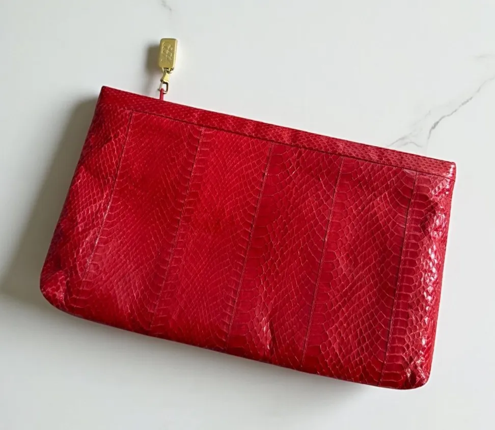 This vintage SAKS FIFTH AVENUE clutch is crafted from luxurious red eel skin, offering a timeless el... Show more
