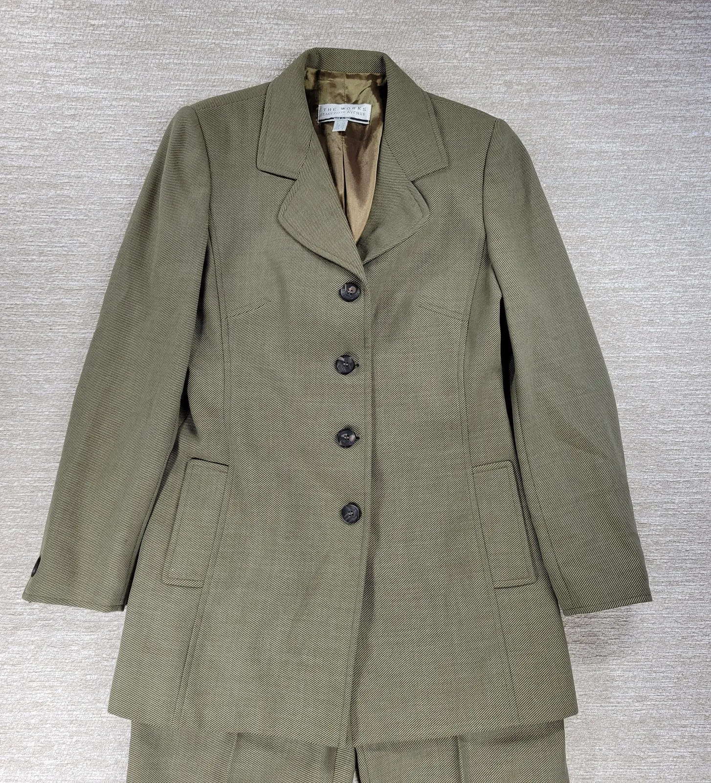 The Works Saks Fifth Avenue Women’s Suit – Olive Wool Blend Blazer & Trouser Set, Made in Italy, Siz... Show more
