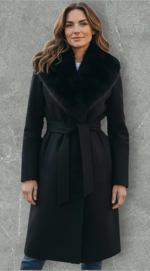 VTG. Saks Fifth Avenue Regency Cashmere Blend Fox Fur Collar Belted Coat. SZ. M. Shoulder pads. No... Show more
