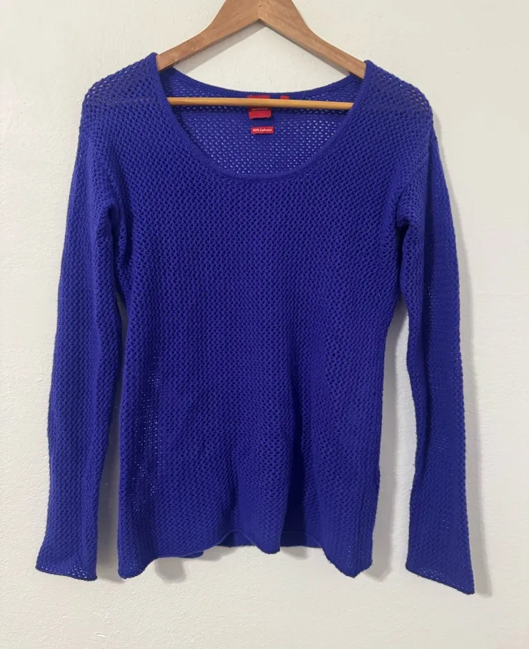 Saks Fifth Avenue Open Knit Cashmere Sweater Purple Scoop Neck Size Medium - $34 - From Kristen