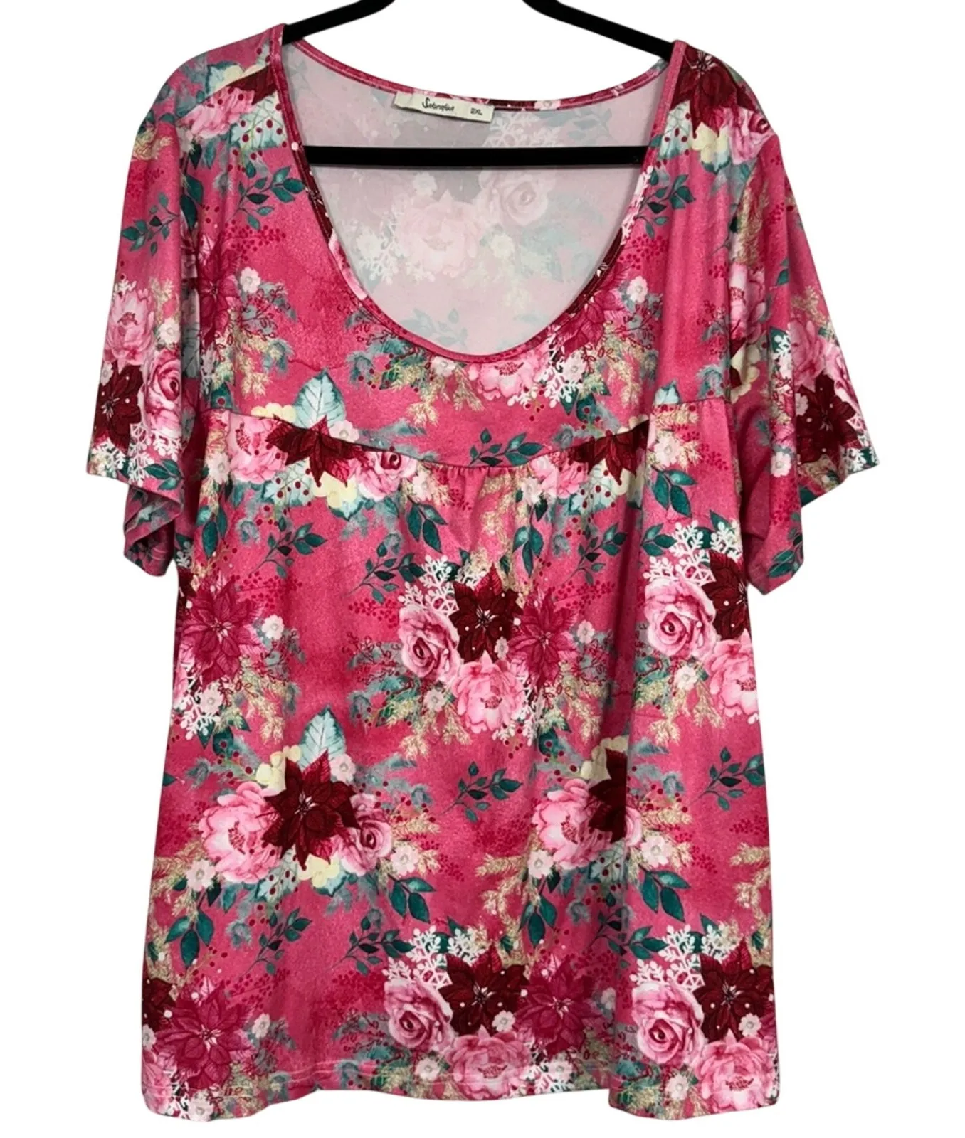 Sakurafina Pink Floral Short Sleeve Tee Shirt Womens 2X Boho Romantic Blouse - $20 - From Lisa