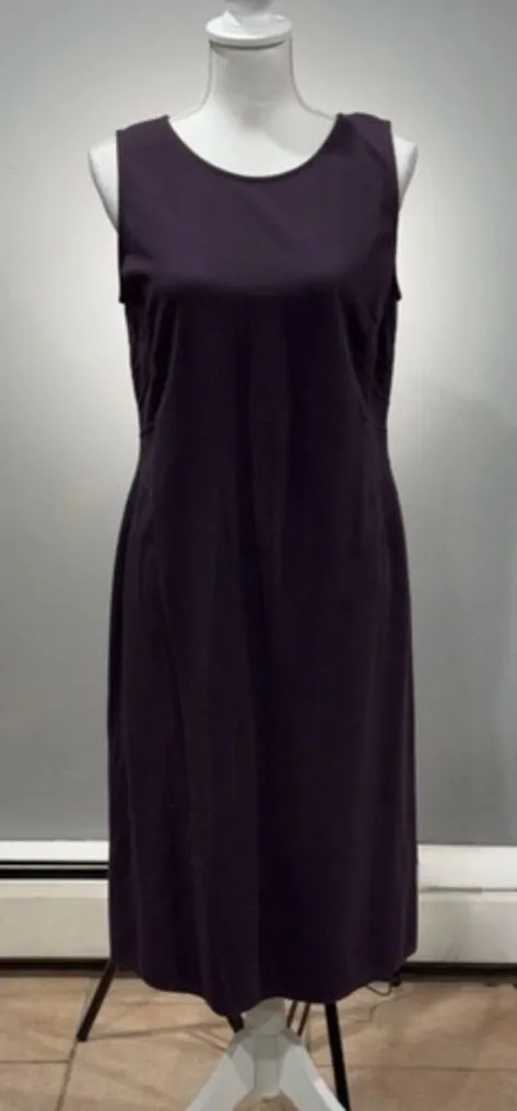 BRAND: Armani Collezioni SIZE: approximate 10, no size tag - please refer to measurements CONDITION: VGUC w/ light wear, missing size tag COLOR: Plum/Purple MEASUREMENTS: 17.5” pit to pit, 15.5” straight across waist, 41” shoulder to hem MATERIALS: 70% viscose, 25% polyamide, 5% elastane CARE: Dry clean NOTES: Back zip Light wear, no tag
