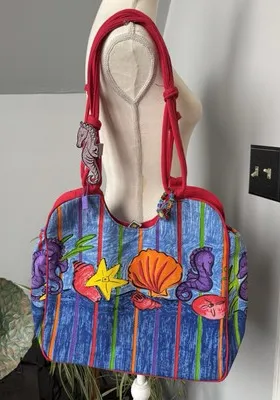 Sally Huss Seahorse Shells Beach Bag Tote‎ Charms Sun Sand Water Colorful Lake Red - $19 - From Jennifer