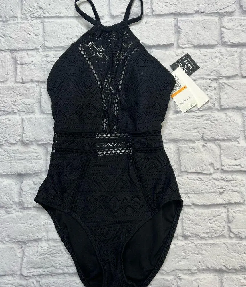 Salt + Cove Juniors Crochet Overlay One Piece Swimsuit Black Size S High Neck - $26 New With Tags - From Alexis