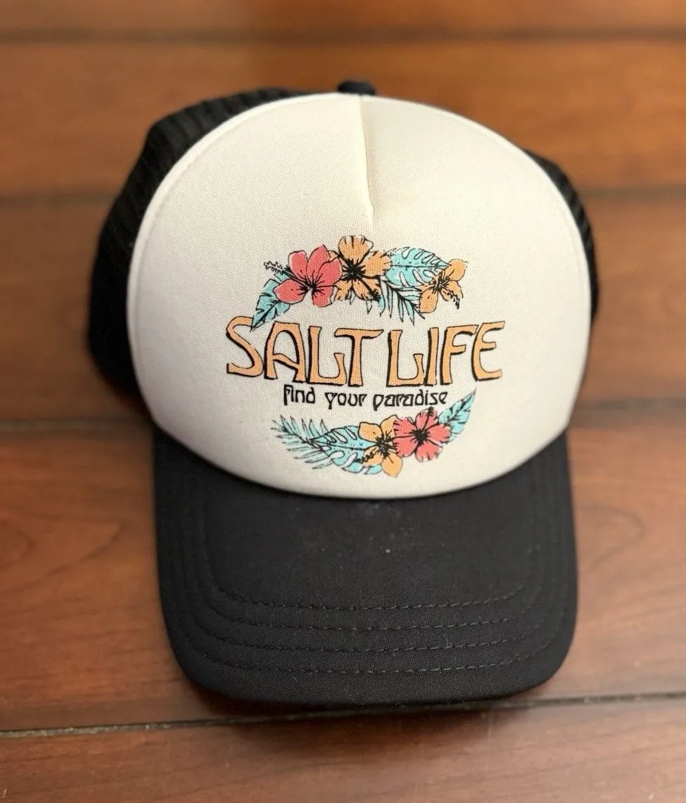 Crafted for those who appreciate the laid-back beach vibe, the Salt Life **Find Your Paradise** Womens Trucker Hat is a stylish and comfortable accessory for any casual occasion. Featuring a vibrant multicolor design, this hat showcases a playful surfer girl character that embodies the spirit of seaside adventures. The adjustable mesh fabric ensures a perfect fit and a cool, breezy feel, making it an essential addition to your summer wardrobe. The hat's classic trucker style is accented with the Salt Life logo, adding a touch of brand identity to the piece. Designed with the modern woman in mind, this hat is both functional and fashionable, blending effortlessly with a variety of outfits. Whether you're hitting the beach or just enjoying a sunny day out, this trucker hat is your go-to for staying shaded in style.