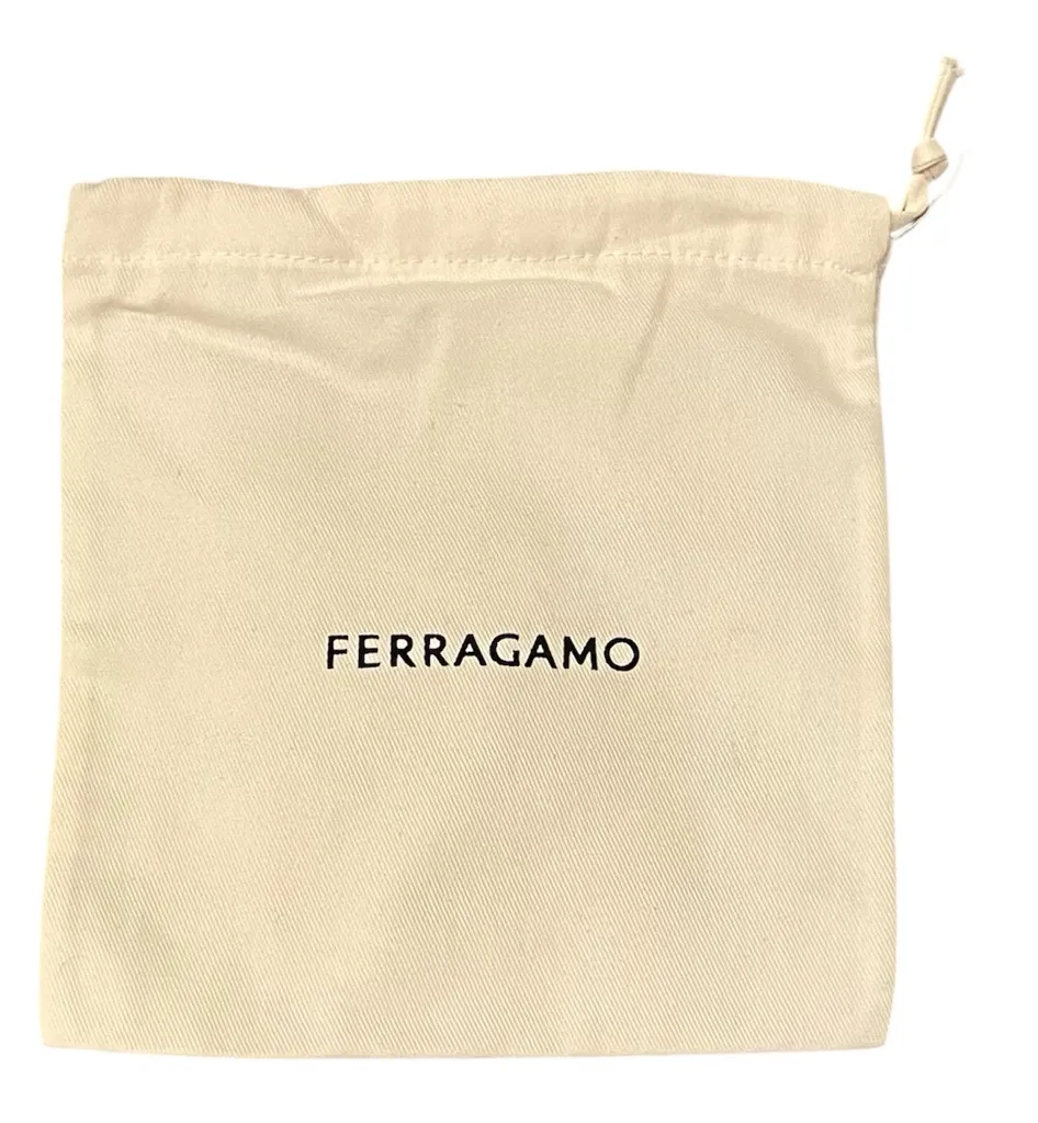 Store your favorite pieces in style! With the bold black on cream Ferragamo logo and matching drawstring closure, this 100% cotton 7.75” x 7” dustbag was made in Italy and is the perfect protection for wallets, mini bags, clutches or accessories.