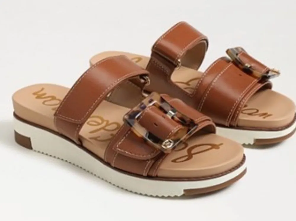 From Sam Edelman, the Adrianna Leather Tortoise Buckle Ornament Platform Slide Sandals feature: Leat... Show more