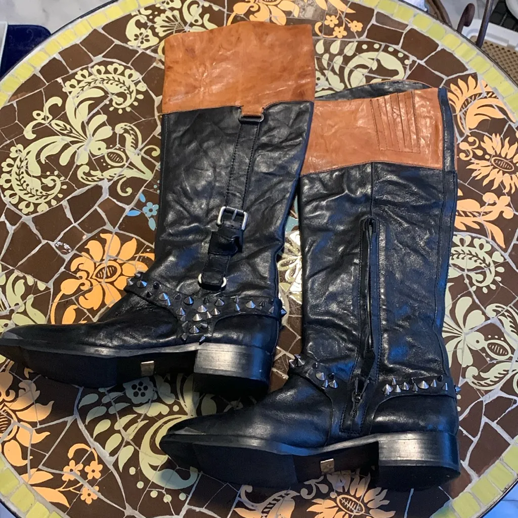 Beautiful Previously Owned In Excellent Condition. Side Zip. Elastic Stretch on Calf. Two Toned Bla... Show more