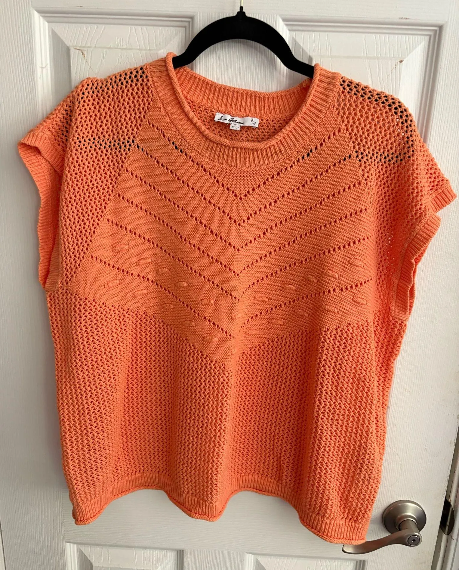 Orange knit summer shirt . Nice material for summer .I own one very similar to it . Cute pattern on... Show more