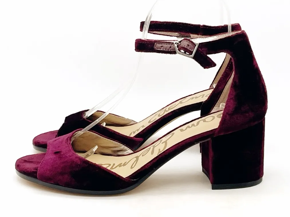 Sam Edelman “Susie” velvet ankle strap block heel sandals in rich burgundy. Elegant open toe style,... Show more