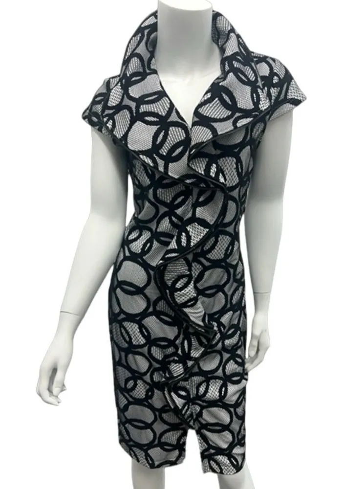 Women's Samuel Dong Dress black white circle Zipper elegant formal casual midi Xs XS pre-owned. Sam... Show more