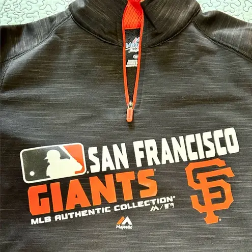sporty, athleisure, fanwear, streetwear, casual, game day, athletic, team apparel, San Francisco Giants jacket, Giants quarter zip, MLB fan fashion, Majestic Giants jacket, baseball team pullover, Giants track jacket, MLB quarter zip, athletic fanwear, sports outerwear, medium Giants jacket