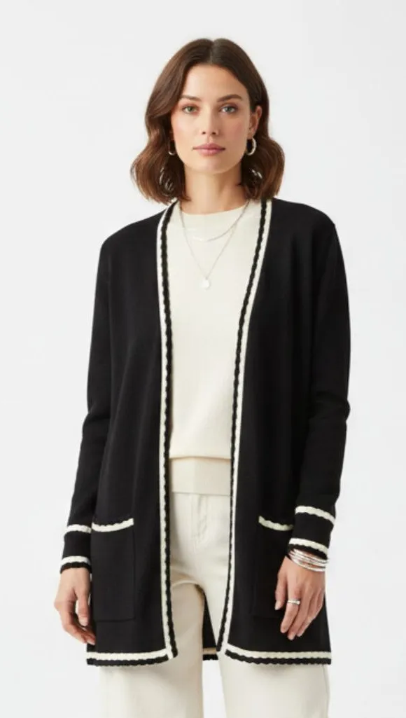 San Remo Women's Vintage Black & White Open Front Knit Cardigan Sweater L Size L - $38 - From Designer