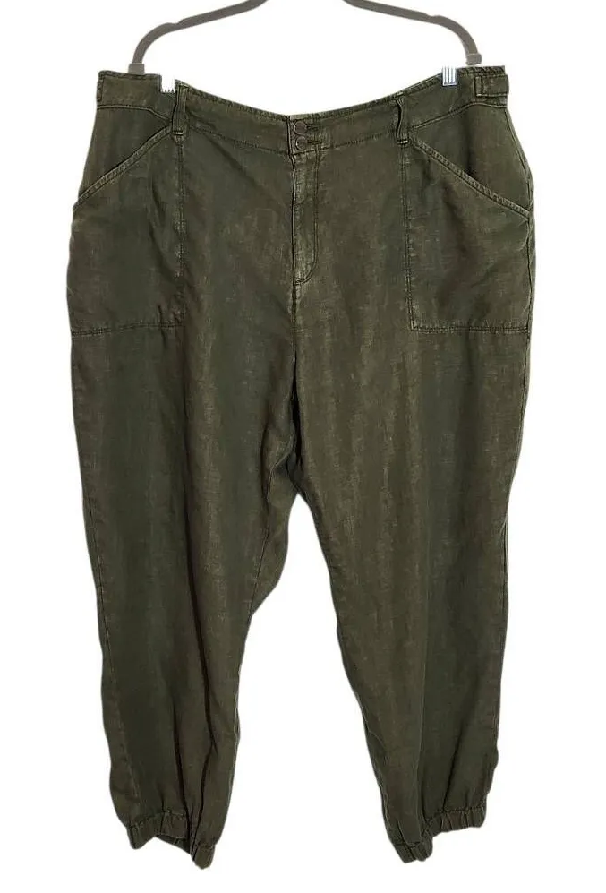 Sanctuary green pants with 100% linen fabric, pockets, and double button and zipper closure. Same-da... Show more