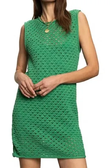 Keywords: Sanctuary green crochet dress, Sleeveless mini dress, Women's crochet dress, Green knit dress, Summer fashion, Vacation dress, Boho chic dress, Party dress, Casual dress, Lightweight dress, Open knit dress, Designer dress, Fashionable dress